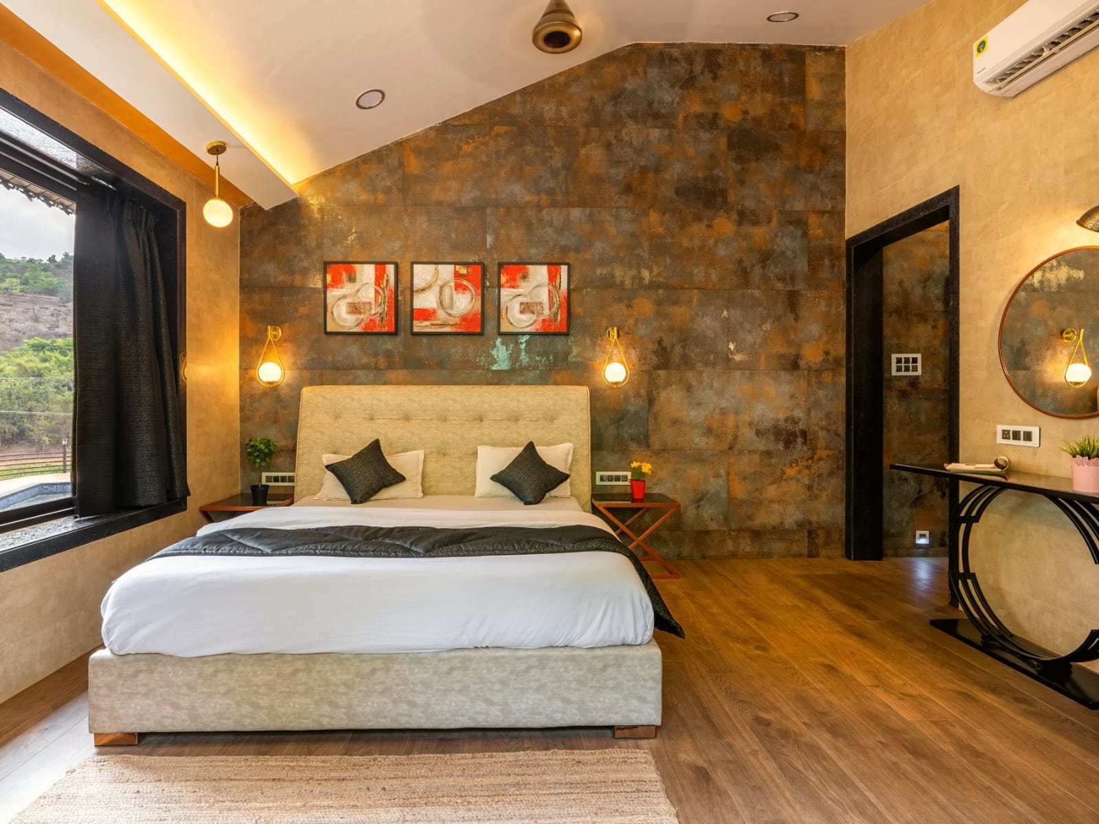 Sunny Side Villa is designed with sophistication, featuring four spacious bedrooms, each with its own ensuite bathroom for maximum comfort and privacy. The modern furnishings, large living spaces, and serene outdoor areas create a tranquil yet stylish atmosphere. Whether you’re looking for relaxation by the private pool or fun-filled activities in the games room, this villa caters to all your vacation needs.Amenities & FeaturesIndoor Features: • Spacious 4BHK Villa – Each bedroom is air-conditioned and comes with attached balconies, offering breathtaking views. • 5 Modern Bathrooms – Elegantly designed with premium fittings for a luxurious feel. • Large Living Room – Stylish interiors with ample seating and entertainment options. • Games Room – Equipped with Air Hockey for fun-filled indoor recreation. • TV with Cable Access – Enjoy your favorite shows and movies. • WiFi Connectivity – Stay connected with high-speed internet.Outdoor Features: • Private Swimming Pool – Take a refreshing dip in your own exclusive pool. • Lush Lawn & Outside Seating Area – Perfect for relaxation, conversations, or a peaceful morning tea. • Attached Balconies – Offers panoramic views of the beautiful surroundings.Additional Services: • Meal Packages Available – Enjoy delicious meals prepared by a professional chef. • Power Backup – Ensures a comfortable stay without interruptions. • Service on Call – Dedicated staff available for assistance throughout your visit.Sunny Side Villa? • Prime Location – Situated near Pawna Lake, offering serene views and a peaceful ambiance. • Luxury & Comfort – A well-designed villa with a balance of modern amenities and nature. • Perfect for All Occasions – Ideal for family getaways, weekend retreats, celebrations, and relaxing vacations. • Exclusive Amenities – From a private pool to a games room and outdoor seating, this villa ensures a unique and enjoyable experience.Sunny Side Villa– Luxurious 4BHK Villa near Pawna Lake, LonavalaExperience grand luxury and modern elegance at ASLV210, a beautifully designed 4-bedroom villa nestled near Pawna Lake, Lonavala. Conveniently located just a short drive from Mumbai and Pune, this villa offers the perfect blend of comfort, privacy, and scenic beauty. Whether you’re planning a relaxing retreat, a family getaway, or a celebration, this villa is designed to provide a memorable experience with its premium amenities and personalized service.Villa OverviewSunny Side Villa features spacious, air-conditioned bedrooms, each with attached balconies that offer stunning views of the surrounding landscape. The villa’s modern interiors, private swimming pool, lush lawn, and dedicated games room create the ideal atmosphere for relaxation and entertainment.Amenities & FeaturesIndoor Features: • 4 Spacious Bedrooms – Thoughtfully designed, fully air-conditioned rooms with attached washrooms for maximum comfort. • Attached Balconies – Enjoy breathtaking views of the lush greenery and serene surroundings. • Large Living Area – Stylishly furnished with ample seating and entertainment options. • Games Room – Equipped with Air Hockey, adding a fun element to your stay. • TV with Cable Access – Catch up on your favorite shows and movies. • WiFi Connectivity – Stay connected with high-speed internet throughout the villa.Outdoor Features: • Private Swimming Pool – A large, inviting pool for a refreshing swim at any time. • Lush Lawn – Perfect for outdoor activities, relaxing, or enjoying a cup of coffee in nature. • Attached Balconies – Providing panoramic views and fresh air, making your stay even more enjoyable.Additional Services: • Meal Packages Available – Savor delicious meals prepared by a professional chef. • Power Backup – Ensures a comfortable and uninterrupted stay. • Service on Call – Dedicated staff available to assist you throughout your visit.