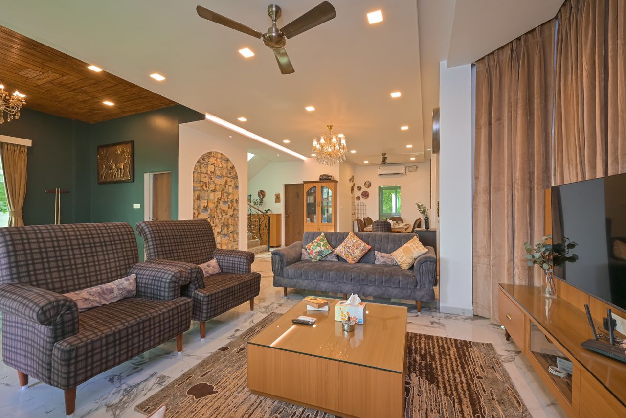 • Spacious Living Room – A beautifully designed living space with air conditioning and a TV, perfect for socializing and relaxation.