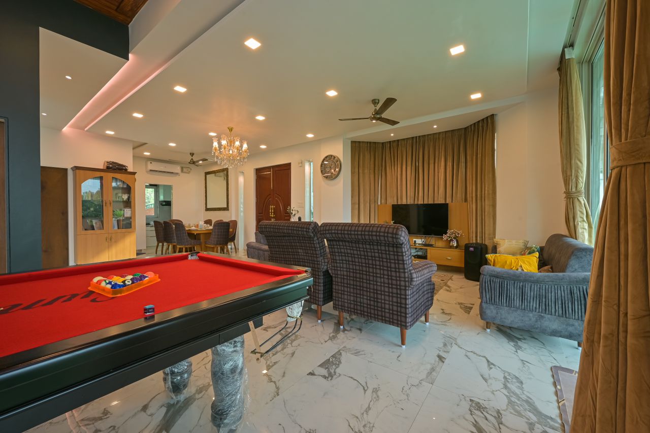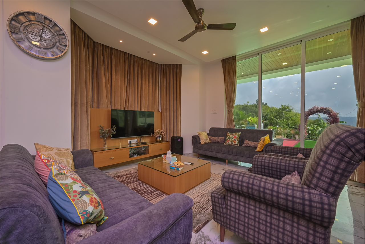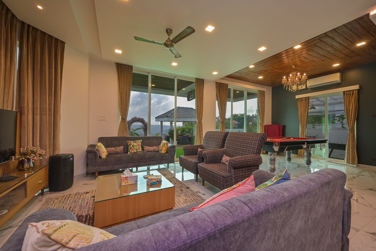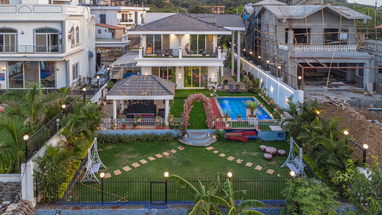 Located in one of Lonavala’s most picturesque areas, Green Paradise is a spacious and fully furnished villa featuring modern interiors, high-end entertainment options, and open outdoor spaces. From the private swimming pool to the outdoor theatre experience, this villa ensures a stay filled with both luxury and adventure. Wake up to the beautiful mountain landscapes, enjoy a relaxing evening in the gazebo seating area, or indulge in indoor and outdoor activities that make every moment enjoyable.