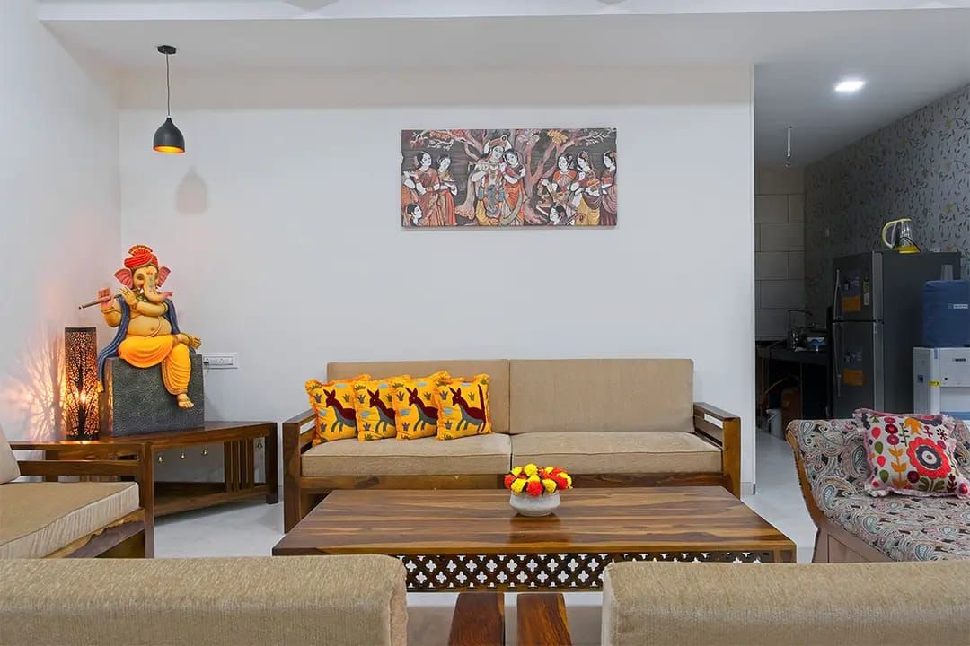• Spacious Living Room – A beautifully designed living area with comfortable seating, elegant lighting, and a Smart TV for entertainment. Ideal for unwinding with family and friends.
